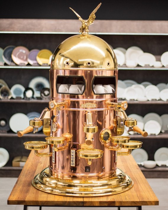 • Obudowa z mosiądzu, miedzi lub chromu sprawia, że ekspres wygląda niezwykle elegancko