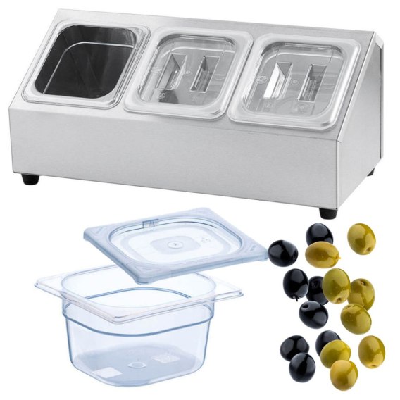 Ekspozytor do Produktów 3 Pojemniki GN 1/6 + Pokrywki | STALGAST 815200_166101_166014