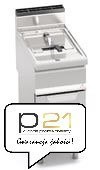 Płaszczyzna robocza i panele przednie wykonane ze stali nierdzewnej inox AISI 304. Zaokroąglony zbiornik z obszerną częścią chłodną służącą do zbierania pozostałości potraw. Rurowe palniki w formie plastra miodu. System smażenia, utrzymując właściwości organoleptyczne oleju niezmienione, umożliwia gotowanie potraw w sposόb zdrowy oraz redukuje ilość koniecznych wymian oleju, zapewniając znaczną oszczędność. System zabezpieczający wyposażony w czujnik temperatury i termostat awaryjny, płomień pilotujący osłonięty. 7 pozycji ustawiania temperatury w zakresie od 110 do 190°C. Przybliżona maksymalna produkcja godzinowa 18 kg. Średni czas smażenia 5 minut. Podgrzewanie wstępne 10 minut (od 20 do 190°C.). Zapłon piezoelektryczny z osłoną silikonową. Nόżki nastawne.