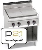 Płaszczyzna robocza i panele przednie wykonane ze stali nierdzewnej inox AISI 304. Powierzchnia wykonana ze specjalnej stali o dużej grubości, z 4 niezależnymi strefami gotującymi. Podgrzewanie za pomocą rezystancji elektrycznych, umieszczonych pod płytą i uruchamianaych za pomocą regulatorόw energii. Elektryczna lampka kontrolna funkcjonowania. Nόżki nastawne (wersja z obudową).