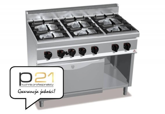 Kuchnia HIGH POWER, gazowa, 6-palnikowa z piekarnikiem GN2/1; 31,5 kW + 7,8 kW, Berto's