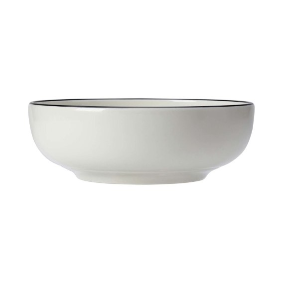 Asteria Minimalizm w praktyce.. Nieskazitelnie biała powierzchnia pozwala Szefowi Kuchni błyszczeć!, Profil bez krawędzi maksymalizuje powierzchnię talerza, pozwalając przestrzeniom naczynia oddychać. Głęboki czarny pasek ogranicza prezentację i zwraca uwagę na danie na talerzu, dodaje ostrości i podkreślenia. Najlepiej łączyć z kolekcją NYX Czerpiąc inspirację z wczesnej mitologii greckiej, Asteria jest boginią gwiazd, dodając elementy z tej linii rozjaśnisz ich blaskiem cały stół. W połączeniu z Nyx, boginią nocy, tworzą ciekawy zestaw światła i ciemności, który prezentuje się jako elegancka, wyrafinowana i odważna kreacja