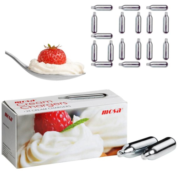 Wybierz profesjonalne naboje do bitej śmietany marki Mosa i spróbój najwyższej jakości i wydajności.