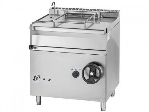 Opis: Profesjonalna, bardzo wydajna i wszechstronna uchylna patelnia gazowa z linii 700 Stworzone jako rezultat ponad 40 letniego doświadczenia w produkcji sprzętów gastronomicznych Pozwala na przygotowanie dużej liczby dań w krótkim czasie dzięki swojej dużej powierzchni roboczej Przeznaczona jest do obróbki termicznej potraw, smażenia, gotowania, duszenia i grillowania Idealnie sprawdzi się w zakładach żywienia zbiorowego takich jak restauracje, stołówki, szkoły, szpitale, zakłady karne lub różnego rodzaju lokalach gastronomicznych Patelnia jest bezpośrednio ogrzewana za pomocą elementów grzejnych ze stali nierdzewnej, znajdujących się poniżej dna wanny Ręczny system napełniania wanny wodą za pomocą zaworu lub kranu do napuszczania zimnej wody Piezoelektryczne zapalanie płomienia kontrolnego, z ręczną regulacją mocy, płomień główny i płomień ekonomiczny Nowoczesny design i ergonomiczna konstrukcja zapewnia łatwą obsługę patelni i komfort użytkowania Urządzenie w całości wykonane jest z najwyższej jakości stali nierdzewnej AISI 304 Precyzyjna i płynna regulacja temperatury za pomocą termostatu w zakresie od 50 do 250 °C pozwala na szerokie zastosowanie patelni Wyposażona w gazowy zawór bezpieczeństwa z termoparą, który chroni patelnię przed nadmiernym wzrostem ciśnienia oraz zamyka zawór gazowy w przypadku zgaszenia płomienia Pokrywa z zawiasami samobalansującymi - sprężynowy mechanizm odchylania pokrywy pozwala na utrzymanie otwartej pokrywy w jednej pozycji, maksymalnie 80 stopni Grube dno wanny patelni jest dodatkowo wzmocnione płytą ze stali nierdzewnej, pozwala to na równomierne rozprowadzanie ciepła na całej powierzchni roboczej Duża moc grzewcza urządzenia pozwala na szybkie nagrzewanie całej powierzchni patelni Ręczny mechanizm przechyłu za pomocą koła pokrętnego z uchwytem, ułatwia czyszczenie wanny i trudniej dostępnych miejsc Funkcjonalny kształt leja wanny pozwala na jej szybkie i wygodne opróżnianie Pokrywa podnoszona jest za pomocą dźwigni znajdującej się z boku urządzenia, zapewniającej bezpieczeństwo podczas korzystania ze sprzętu System bezpieczeństwa z automatycznym wyłączeniem grzałek po uniesieniu wanny Lampka sygnalizująca pracę urządzenia, która ostrzega przed przypadkowym dotknięciem i poparzeniem Komora spalania i przewód spalinowy wykonane są z blachy nierdzewnej Patelnia może być zasilana gazem ziemnym lub gazem z butli - prosimy o wybór dysz przy składaniu zamówienia Urządzenie posiada certyfikat TÜV W przypadku niefiltrowanej wody z sieci zalecane jest zastosowanie zmiękczacza do wody, aby zachować walory smakowe wody oraz zapewnić urządzeniu ochronę przed zakamienieniem Urządzenie jest proste w czyszczeniu i utrzymaniu w czystości Antypoślizgowe nóżki z regulowaną wysokością Wszystkie komponenty mające kontakt z żywnością spełniają wszystkie normy HACCP   Parametry techniczne: Wymiary zewnętrzne [mm]: 800x700x900 Pojemność robocza [l]: 50 Pojemność całkowita [l]: 58 Powierzchnia robocza wanny [m2]: 0,28 Wymiary wanny [mm]: 720x380x220 Napełnianie wodą: ręczne System grzania: bezpośredni Przechylanie: ręczne Maksymalny przechył wanny [°]: 80 Przyłącze wody zimnej: 1/2" Regulacja temperatury [°C]: 50-250 Moc [kW]: 12 Rodzaj gazu: G20/G30 Przyłącze gazowe: 1/2" Zasilanie [V]: 230 Waga [kg]: 122