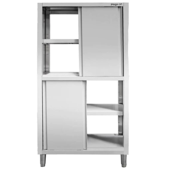 Szafa została wykonana z odpornej na korozję stali nierdzewnej SS201 o grubości 0,8 mm, która jest biologicznie obojętna wobec żywności oraz łatwa w czyszczeniu. Gładka powierzchnia zapewnia higienę, a jednocześnie doskonale się prezentuje. Cztery wzmocnione półki pozwalają na przechowywanie dużej ilości przedmiotów w sposób bezpieczny i uporządkowany.