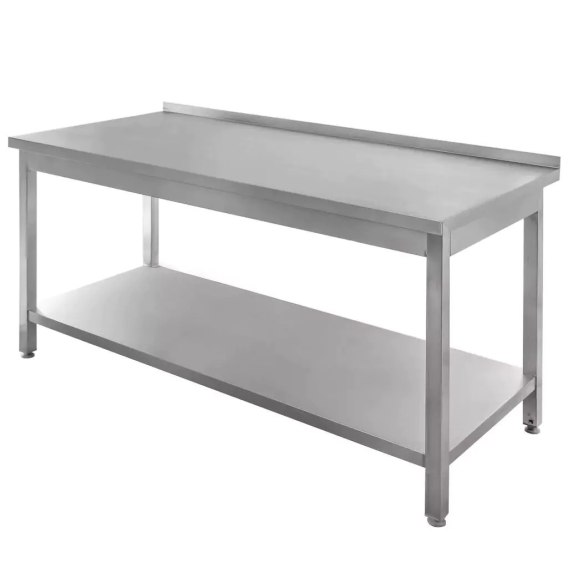 Stół spawany z półką i rantem marki  stanowi gwarancjęwytrzymałości, funkcjonalności orazbezpieczeństwa.  Wyprodukowany w Polsce z wysokogatunkowych materiałów. Objęty 12-miesięczną gwarancją. Mebel roboczy wykonany jest z wysokiej jakościstali nierdzewnej odpornej na wszelkiego rodzaju uszkodzenia mechaniczne oraz korozję.Stół spawany posiada dwupoziomową konstrukcję pozwalającą na umieszczenie w jego dolnej części naczyń potrzebnych do pracy. Dodatkowym plusem w stole jest rant, który zapewnia ochronę przed dostaniem się jakichkolwiek zabrudzeń pomiędzy ścianą a stołem. Gwarantujekomfort i bezpieczeństwo pracy.