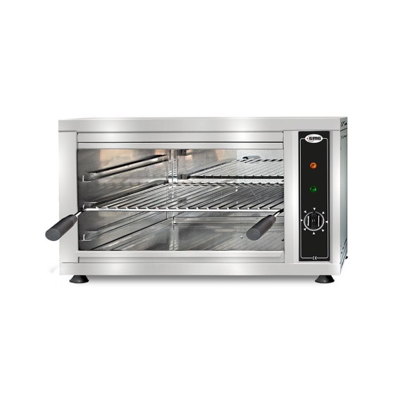 Korpus urządzenia wykonano z wytrzymałej stali nierdzewnej odpornej na wysokie temperatury i łatwej w utrzymaniu czystości. Regulowany ruszt wyposażono w trzy poziomy prowadnic, co pozwala dopasować odległość potrawy od elementów grzewczych. Taka konstrukcja zapewnia elastyczność pracy i umożliwia precyzyjne kontrolowanie stopnia zapieczenia.