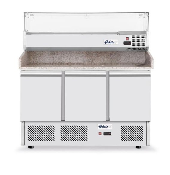Stół Chłodniczy do Pizzy 3-Drzwiowy z Nadstawą i Blatem Granitowym 254l 1400x700 | HENDI 232033