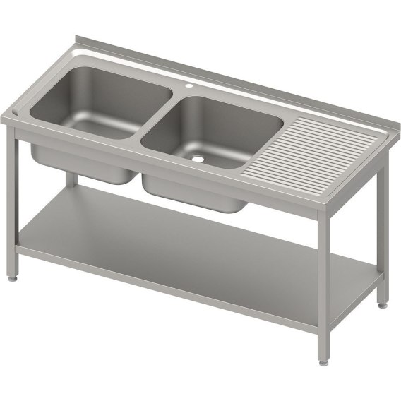 Stół Zlew 2-Komorowy (L) z Półką 1400x700x850 Blat Tłoczony | STALGAST 983177140