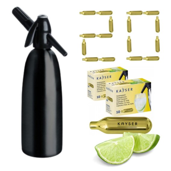 Syfon do Wody Sodowej Gazowanej Saturator 1L Czarny + 20 Naboi