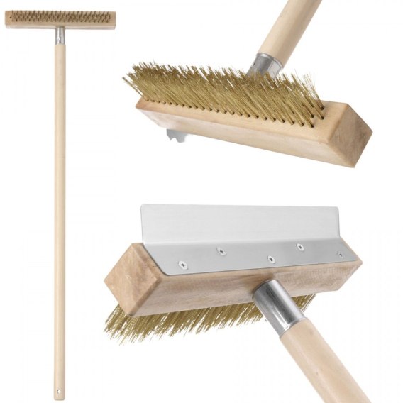 Wysokiej jakości profesjonalna szczotka do czyszczenia pieca do pizzy wyposażona w skrobak. Przeznaczona do użytku w pizzeriach i dużych restauracjach.