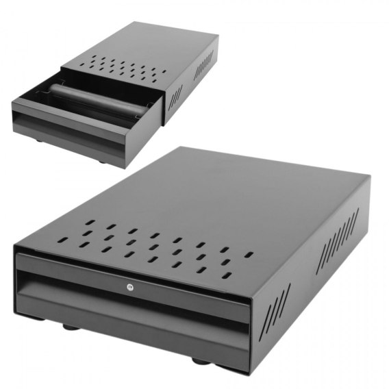 Prezentujemy funkcjonalny produkt, wykonany z wytrzymałej stali węglowej. Szuflada posiada wyjmowaną poprzeczkę oraz perforowany blat, który pozwala na swobodne odprowadzanie wody i zapewnia dobry przepływ powietrza. Dzięki temu produkt idealnie sprawdzi się jako podstawa pod młynek do kawy, gwarantując bezpieczne i higieniczne przechowywanie urządzenia.