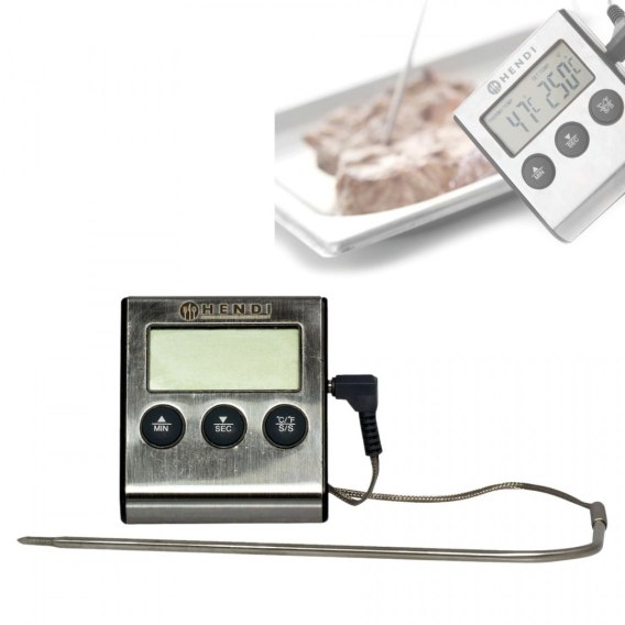 Termometr Kuchenny z Sondą i Timerem Hendi 271346 - Niezbędny w Każdej Kuchni Poznaj Termometr Kuchenny Hendi 271346, z sondą i timerem. Zakres pomiaru od -50°C do +250°C, funkcja timera z sygnałem dźwiękowym, wybór jednostki °C/°F, i żaroodporna sonda ze stali nierdzewnej. Idealny do pieczenia i gotowania, zapewnia precyzję i kontrolę nad procesem kulinarnym.