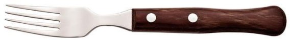 FOREST is a series of knives and forks designed for steaks and roasted meat. Their wooden handles in rustic-style make them stand out. Made in Spain. Knife blades are made of innovative, martensitic NITRUM® stainless steel with increased hardness and corrosion resistance. Forged from a single piece of steel. Forks are made of AISI 304 stainless steel. Knives and forks are made from rolled steel and connected to their handles with rivets. The handles are made made from compressed layers of wood and resin. In