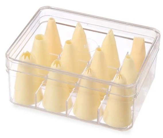 Profesjonalne końcówki cukiernicze do rękawów zostały wykonane z atestowanego polipropylenu. W pudełku znajduje się 12 sztuk końcówek, pozwalających na wykonanie różnych rodzajów dekoracji. Końcówki cukiernicze marki Hendi posiadają atest i mogą być stosowane w gastronomii oraz przemyśle spożywczym. Kod producenta Hendi - 551400