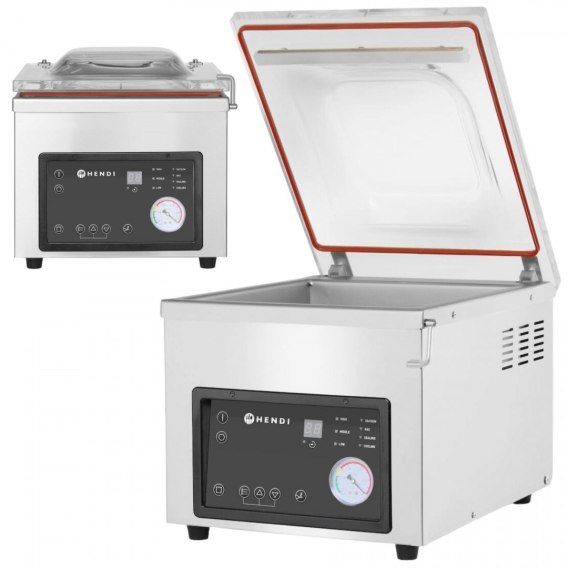 Profesjonalna pakowarka próżniowa komorowa firmy HENDI. Idealnie nadaje się do stosowania w gastronomii oraz sklepach spożywczych. Może być używana do pakowania żywości oraz produktów technicznych. Dzięki pakowarce komorowej HENDI, okres przydatności zapakowanej próżniowo żywności zwiększa się kilkukrotnie. Pakowarka komorowa HENDI jest idealnym rozwiązaniem dla coraz popularniejszej metody gotowania SOUS VIDE, szczególnie w obiektach profesjonalnych.
